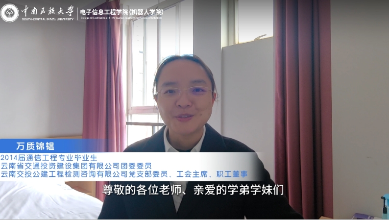在校友分享环节中,光电信息科学与工程2018届校友蒋铠乐、通信工程2015届校友万质锦韫、通信工程2000届校友尹玉昆作为校友代表依次分享。三位校友深情回顾了在母校的求学岁月,并分享了各自在不同领域的职业历程与感悟。蒋铠乐讲述了自己投身军旅、坚守初心的成长故事,号召学弟学妹们胸怀家国、携笔从戎,以青春热血践行报国使命;万质锦韫分享了在云南省交通投资建设集团有限公司履职期间,直面项目难题、攻坚克难推动项目落地的实战经历,传递了勇于担当、实干笃行的职业精神;尹玉昆回顾了在华为公司的职业发展路径,分享了应对行业变革、深耕专业领域的心得体会,寄语学弟学妹要主动拥抱时代变化、坚持终身学习,在奋斗中成就自我。三位校友均表达了对母校和学院培养之恩的诚挚谢意,并郑重表示将持续关注母校发展、全力支持学院建设,为学院高质量发展贡献校友力量。